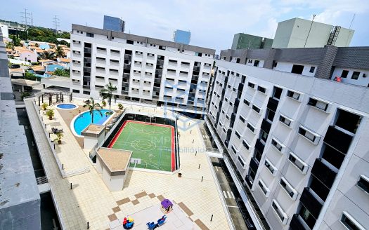 – Área social com piscina, ginásio, quadra-desportiva e salão de festas